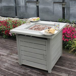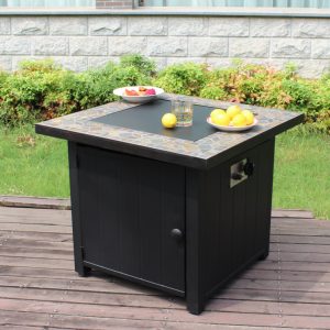 25 ” H x 30” W Slate Propane Outdoor Fire Pit Table with Lid