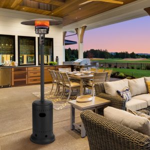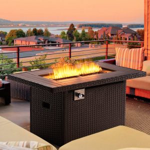 Lyailya 24.8″ H x 28″ W Iron Propane Outdoor Fire Pit Table with Lid