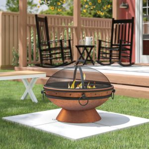 17” H x 26” W Outdoor Fire Pit with Grill, Fire Pit Table with Lid