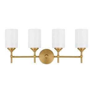 Home Decorators Collection Ayelen 4-Light Matte Brass Modern Bathroom Vanity Light with Opal White Glass