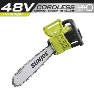 Sun Joe – 48-Volt iON+ 16-Inch Cordless Chainsaw with Scabbard (2 x 2Ah Batteries and 1 x Charger) – Green