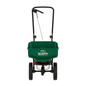 Scotts Turf Builder EdgeGuard Mini Push Broadcast Spreader Holds up to 5,000 sq. ft. for Seed, Fertilizer, Salt, Ice Melt