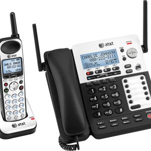 AT&T – SB67138 SynJ® Expandable 4-Line Corded/Cordless Small Business Phone System – Black/Silver
