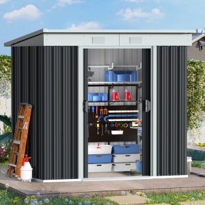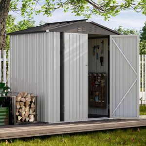 6 ft. W x 4 ft. D Metal Vertical Storage Shed, White&Black
