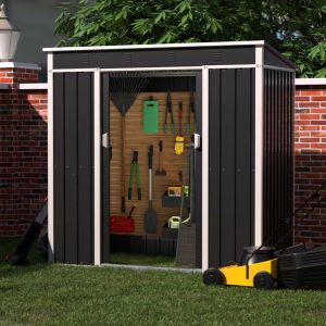 4 ft. W x 3 ft. D Galvanized Steel Tool Shed, Black Outdoor Metal Shed With Lockable Handles