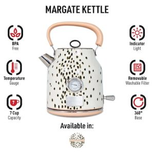 Haden White / Pink / Brown Spots 7-Cup Cordless Electric Kettle
