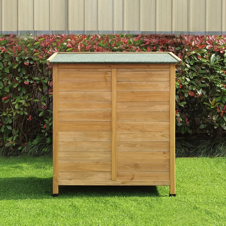 - Outdoor Wooden Storage Shed for Tools, Equipment, Garden Supplies, with Shelf and Locking Latch