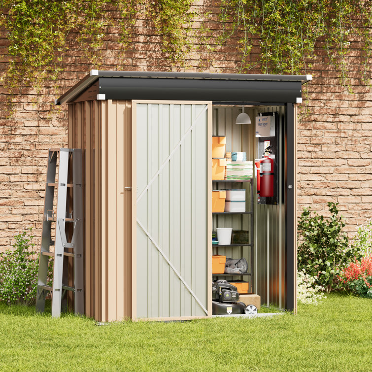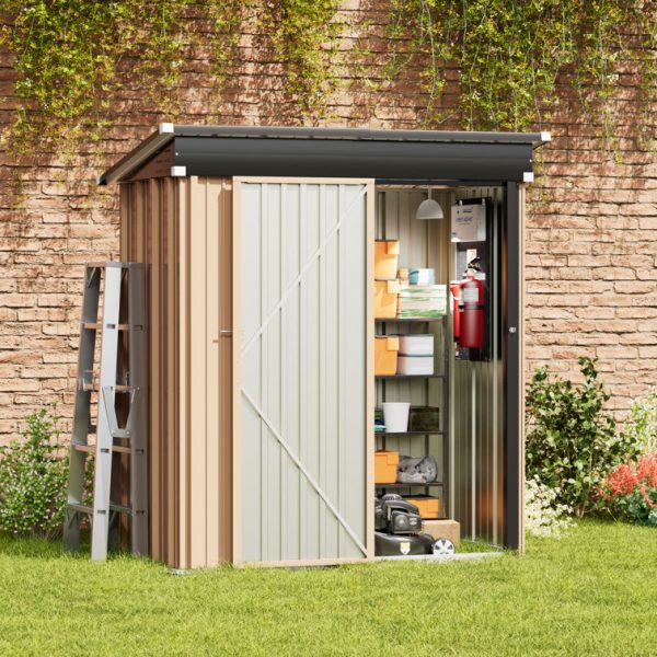 - Sloped Roof & Lockable Door for Your Convenience: This small but sturdy storage shed features an inclined slope roof to prevent rainwater from gathering and rust accumulation, while the pad-lockable door enhances safety and prevents small animals from entering.