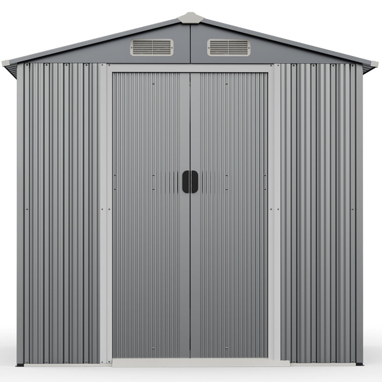 - Color: Light Gray/Dark Gray. Material: Galvanized Metal, Color Steel Tile. Overall Dimension: 6.4′ x 4.6′ x 6′ (L X W X H).