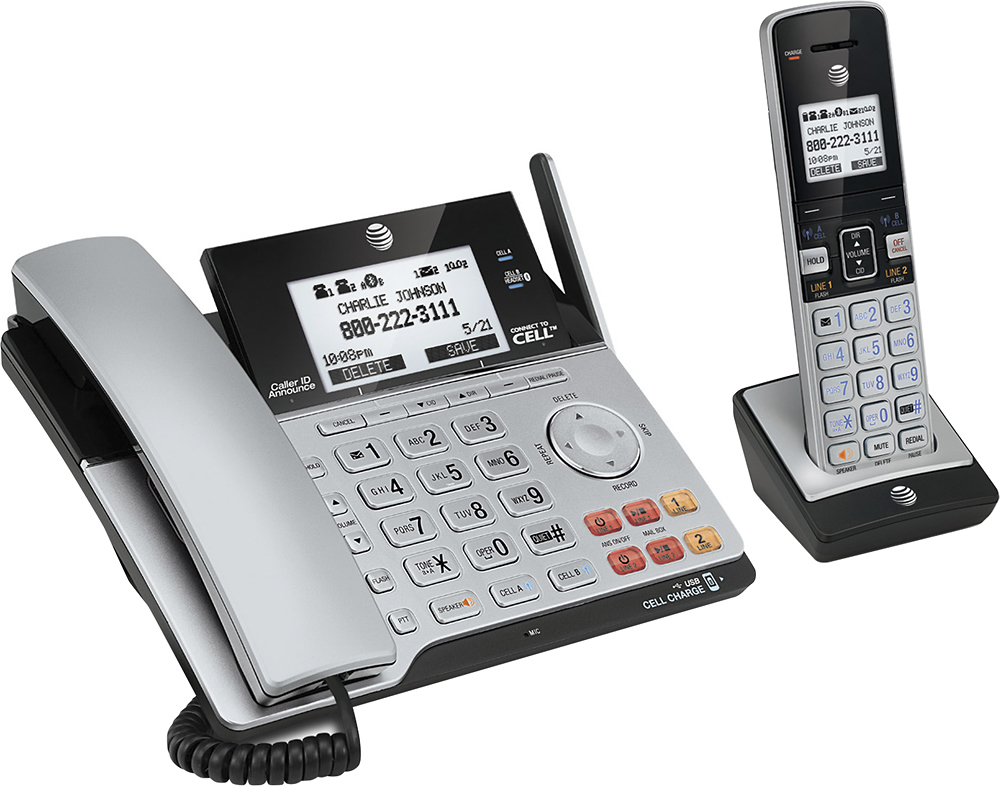 AT&T – TL86103 DECT 6.0 2-Line Expandable Corded/Cordless Phone with Bluetooth Connect to Cell and Answering System – Silver/Black