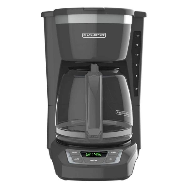 Make your favorite coffee anytime with the Black and Decker 12 Cup Programmable Coffee Maker in Gray. The Digital display and programming buttons make it easy to set the 24-hour auto brew feature and shave some time off of your morning routine. Other useful features include Sneak-A-Cup auto-pause Technology, the 12-Cup glass carafe and a washable brew basket.