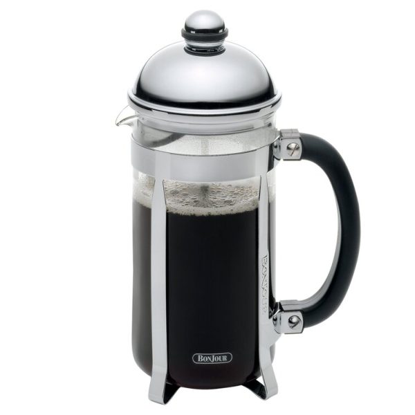 - STAINLESS STEEL SHIELD: 8-cup French press has a brushed stainless steel frame and stainless steel domed filtering lid