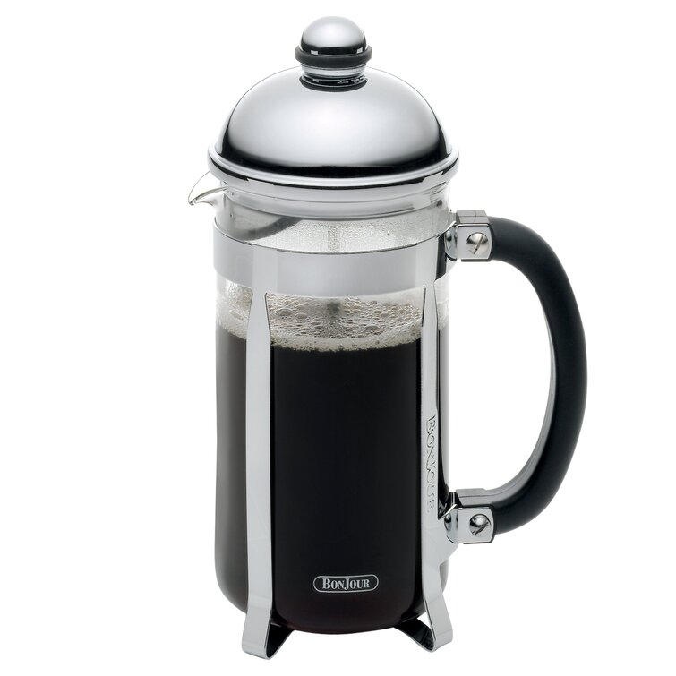 - DURABLE CONSTRUCTION: French press is crafted from heat-resistant borosilicate glass with easy-pour spout and stainless steel frame