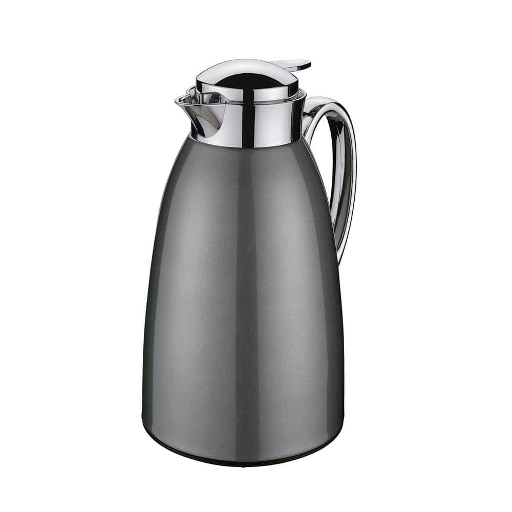 This insulated server is perfect for carrying hot or cold drinks for an extended period. It has an insulating tempered glass insert that maintains the drink’s temperature for 12-hours. The screw cap with push-button makes pouring easy and spill-free. With a 1-quart capacity, it’s durable and practical.