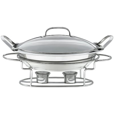 Two tea light candles provide the heat to keep food at proper serving temperatures