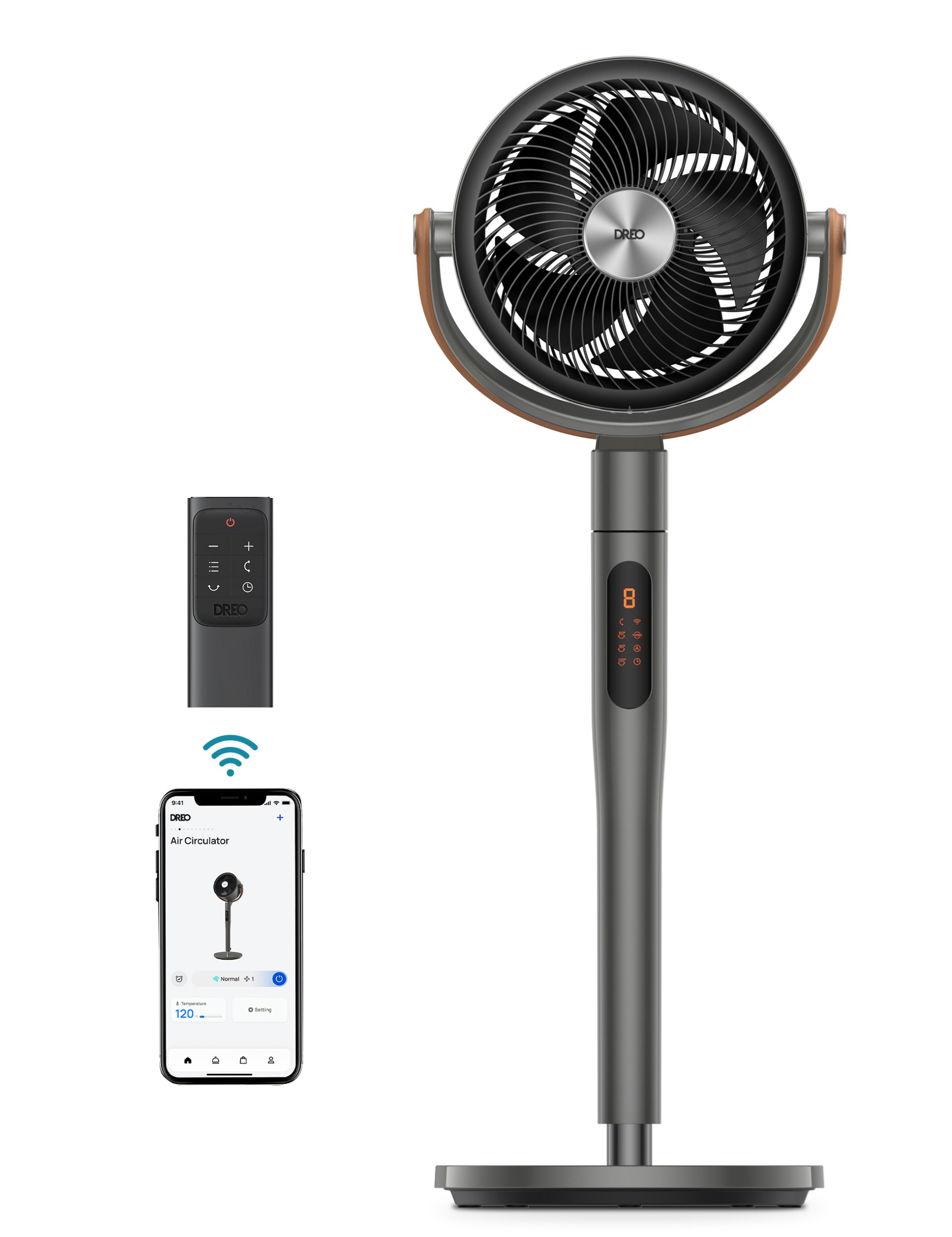 Dreo – Pedestal Fan with Remote, 120° + 105°Smart Oscillating Floor Fans with Wi-Fi/Voice Control, Works with Alexa/Google – Gray