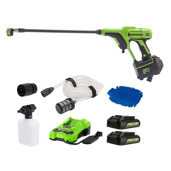 Greenworks – 24V 600-PSI 0.8 GPM Cordless Power Cleaner with (2) 2.0 Ah Batteries and Charger – Green