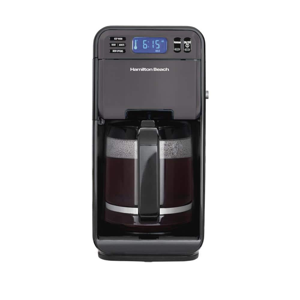 Wake up to the perfect cup of coffee with the Hamilton Beach Elite 12 Cup Programmable Coffee Maker. The easy access design makes this simple to use for everyone, just take out the removable water reservoir to fill with water and pop it back in with ease. There are 3 brew strength options to make the coffee exactly how you like and an automatic pause and serve feature so you can have your coffee without waiting for the entire pot to brew. Try all the settings to make your own perfect cup of coffee.