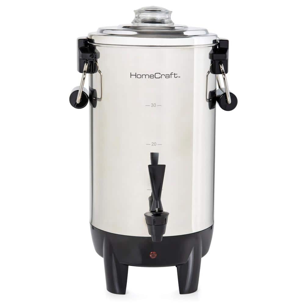 Perfect when hosting large gatherings or for use in meeting rooms, lounges and cafes, this polished stainless steel coffee urn efficiently brews up to 30 cups at a time of coffee, tea, cider, hot chocolate and more. When done brewing, the keep warm function will keep the brew hot for hours and ready for guests. RESERVOIR CAPACITY: 30 cup capacity.