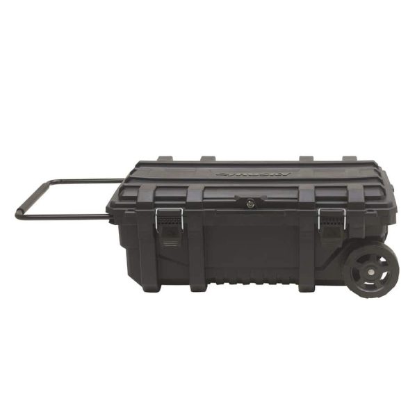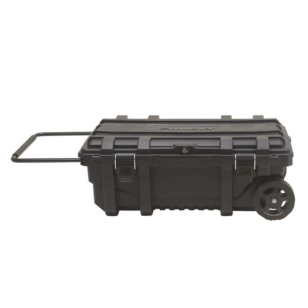 This Husky Rolling Toolbox is heavy-duty for transporting power tools, parts, work gear and more at your home or job site. Its deep storage handily holds 25 gallons, with the weight capacity of 100 lbs. And to secure your tools, this lockable toolbox comes with keys included. Extra security is available with integrated padlock slots. The rugged 7.23 in. diameter rubber wheels and padded, telescoping steel handle makes it easily portable. A gasket in the hinged toolbox lid provides extra protection from severe weather and dust for long lasting use. The versatile lid has other practical key features. For added convenience the Husky Rolling Toolbox offers electrical power cord access so that you can charge tools without taking them out of the toolbox. This toolbox has a limited lifetime warranty. Whether in the basement, garage or at the job site, the Husky Rolling Toolbox is convenient and easy to have close at hand.