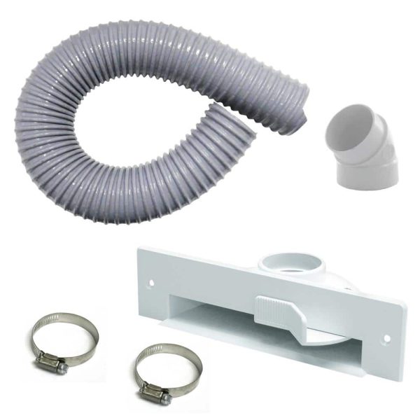 - Included parts: 1 dustpan floor inlet (white) 2 clamps 5.08 cm to 6.35 cm (2 in. to 2.5 in.) 1 45° spigot elbow (M-F) handy flexible hose, 0.6 m (2 ft.) L, 5.08 cm (2 in.) Diagram for easy under cabinet installation