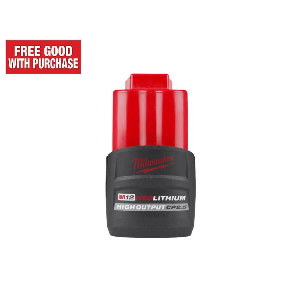 - Includes: (1) 48-11-2425 M12 REDLITHIUM HIGH OUTPUT CP2.5 Battery Pack