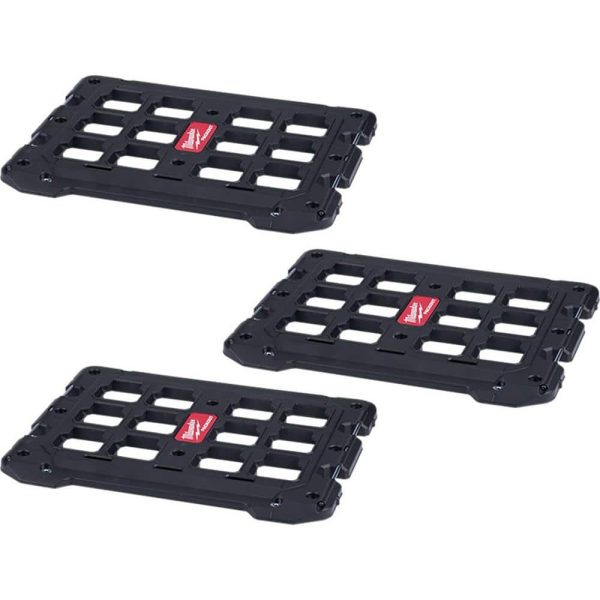 This kit includes (3) 48-22-8485 PPACKOUT Mounting Plates. The Milwaukee PACKOUT Modular Storage System is the industry’s most durable and versatile storage system. The PACKOUT Mounting Plate is constructed with impact resistant polymers, providing users with up to a 100 lbs. weight capacity when mounted to the floor and 50 lbs. when mounted to walls. Metal reinforced mounting holes enable users to securely fasten the Mounting Plate to most surfaces, while metal reinforced tie-down points help users to secure job site supplies to the Mounting Plate. The PACKOUT Modular Storage System allows users to customize and build their storage system to easily transport and organize your tools and accessories.