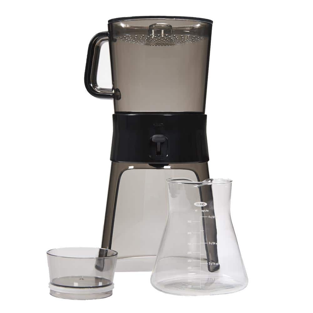 The OXO Cold Brew Coffee Maker simplifies the cold-brew process with its unique features. For example, the Rainmaker ensures water is distributed evenly over coffee grounds, the Brew-Release Switch is easily accessible and allows you to stop and start the draining process, and the stainless steel ultra-fine mesh filter is removable for easy cleaning. The Coffee Maker has all the hard work covered all you have to do is add coffee grounds and water. Once you make the concentrate, you can add ice and water for iced coffee or hot water or milk for hot coffee.