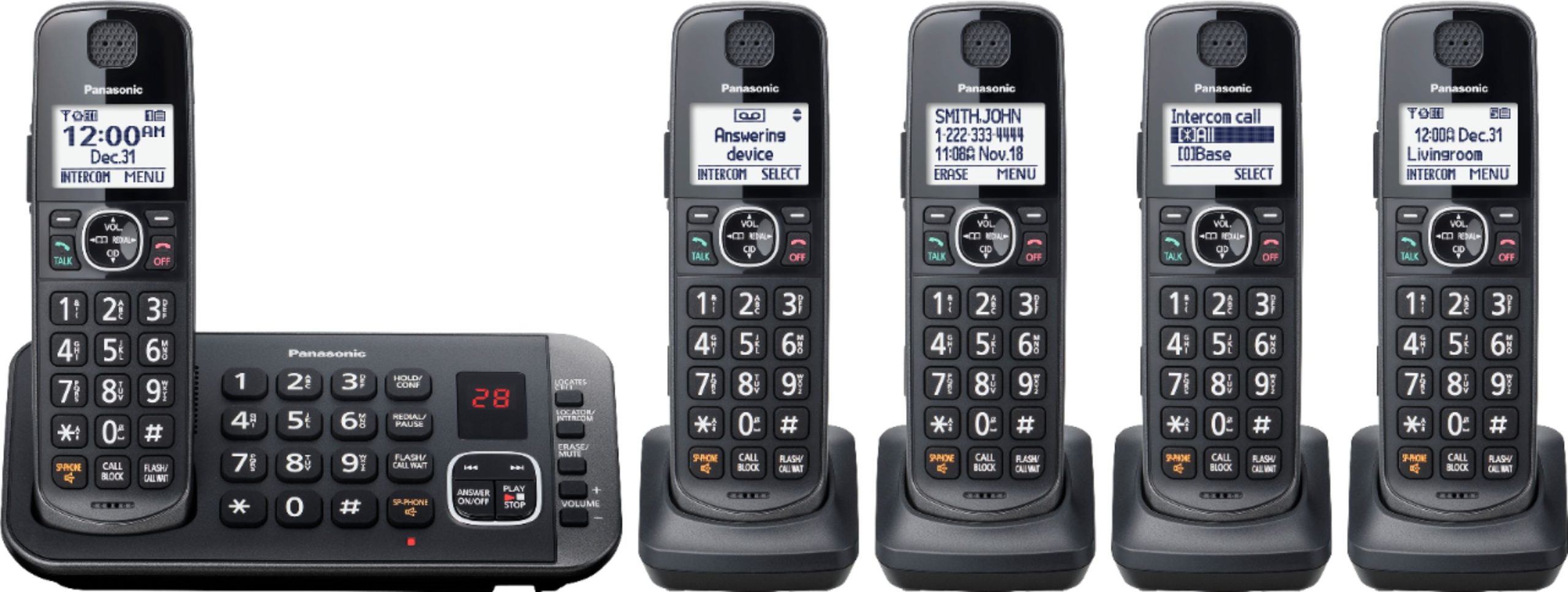 Panasonic – KX-TGE645M DECT 6.0 Expandable Cordless Phone System with Digital Answering System – Metallic Black