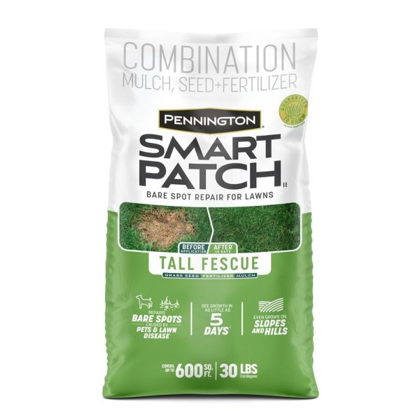 With Pennington Smart Patch, you don’t need to know why your lawn has thin, bare or brown spots. Smart Patch eliminates the guesswork and frustration of lawn repairs. This product has everything you need to fix bare spots, neutralize soil and disease problems, and grow thick, lush, water-conserving grass – even on slopes and hills. Pet damage and dog urine spots? Repair with no problem. Lawn disease and poor soil conditions? That’s covered, too. With Smart Patch, you’ll see quick results you can rely on. It’s the smart choice for lawn repairs. Smart Patch Tall Fescue Mix is everything your lawn needs and more. This dynamic seeding mixture contains microbials with organic matter to fight and prevent lawn disease, patented American Ryegrass that is guaranteed to produce quick results, and a water-soluble tackifier that acts as a blanket for your seed, even protecting it against the rain on slopes and hills. Our Smart Patch seeding mixture is drought tolerant and contains just the right amount of fertilizer to help your lawn succeed, along with mulch that turns a lighter color when dry – notifying you that its time to water again. Plant this grass seed mix in the early spring or early fall and begin to see growth in as little as 5-days and full results as soon as 14-days. For optimum coverage, use 1 lb. per 4 sq. ft. For extended coverage use 1 lb. per 20 sq. ft.