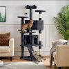 Looking to give your feline friend the perfect place to play? A cat tree like this is a great option for giving your cats a place to scratch, climb, and snooze, all at once! This piece features plenty of textures perfect for your cat’s claws. Three tiers of beds and perches, four scratching posts, and fluffy balls for batting are all included, giving your feline friend plenty to do.