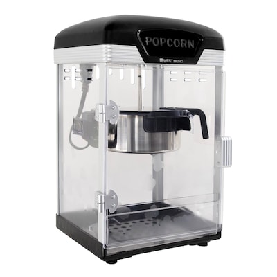 One-touch kettle release effortlessly empties all popped popcorn into the unit for easy serving