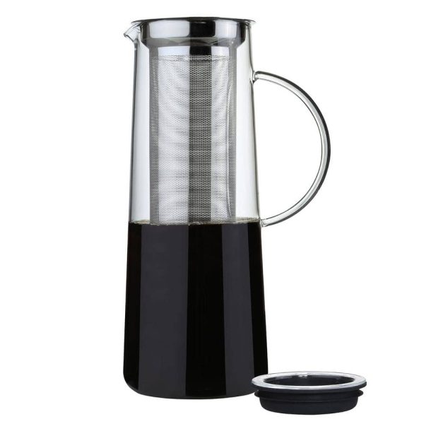 Heres a stylish way to make either hot coffee or a popular Cold Brew. It is super clean and easy. For hot coffee, fill the filter with 6-tablespoons of coarsely ground coffee, add hot (not boiling) water, stir, and place lid on top. Allow to steep to your liking (3-minutes to 4-minutes). Lift filter out if you wish to stop the brewing process, and serve. For cold brew concentrate, fill with 2.25 oz. of coarsely ground coffee, add cold water, stir, and place lid on top. Let it steep at room temperature for 16-hours to 24-hours; remove the filter and replace the lid. Chill for at least 2-hours and use within 5-days. To serve, dilute this concentrate with an equal amount of milk, half-and-half, or water. Optional: sweeten or top with ice.